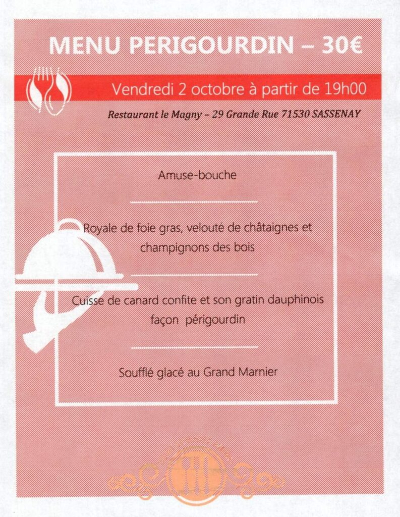Menu Périgourdin proposé le 2 octobre 2020